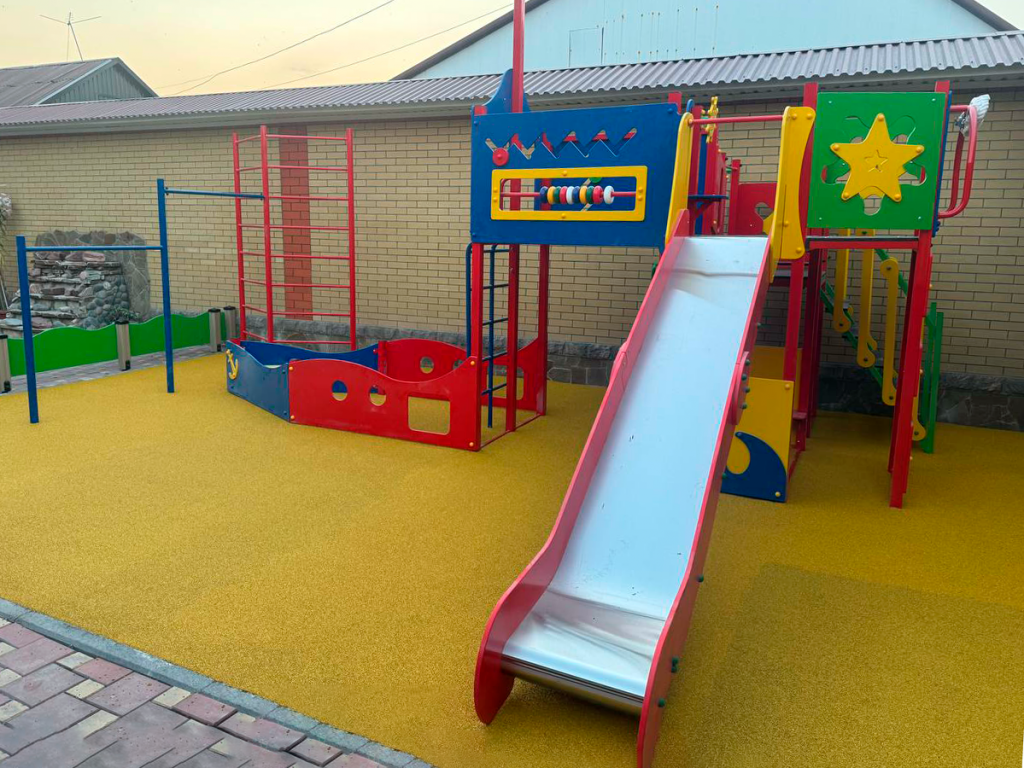 Монтажная бригада под руководством Виктора Кардашина выполнила демонтаж старого покрытия, подготовила основание и уложила бесшовное резиновое покрытие, обеспечив безопасную эксплуатацию комплекса. По ходу установки оборудования многие детали пересогласовывались на месте. Благодаря чёткой работе Камилы Ситдиковой и бригады монтажников площадка была реализована точно в срок и полностью соответствовала ожиданиям заказчиков. В итоге на территории появился яркий, безопасный и функциональный уголок для детских игр и развития.