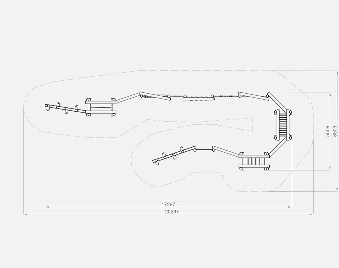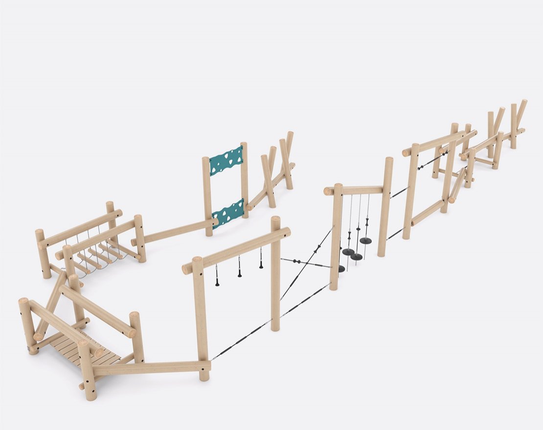 Представляет собой полосу препятствий. Состоит из опорных стоек, перекладин, канатных сеток и строп с пластиковыми уступами.