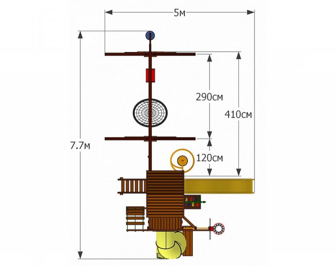 Делавэр 11 — это настоящий игровой мир во дворе, созданный для детей разных возрастов. Двухуровневый домик, лазание по канатной стенке, две горки (включая «Трубу»), турник, шведская стенка и даже баскетбольное кольцо — всё продумано для активных игр.