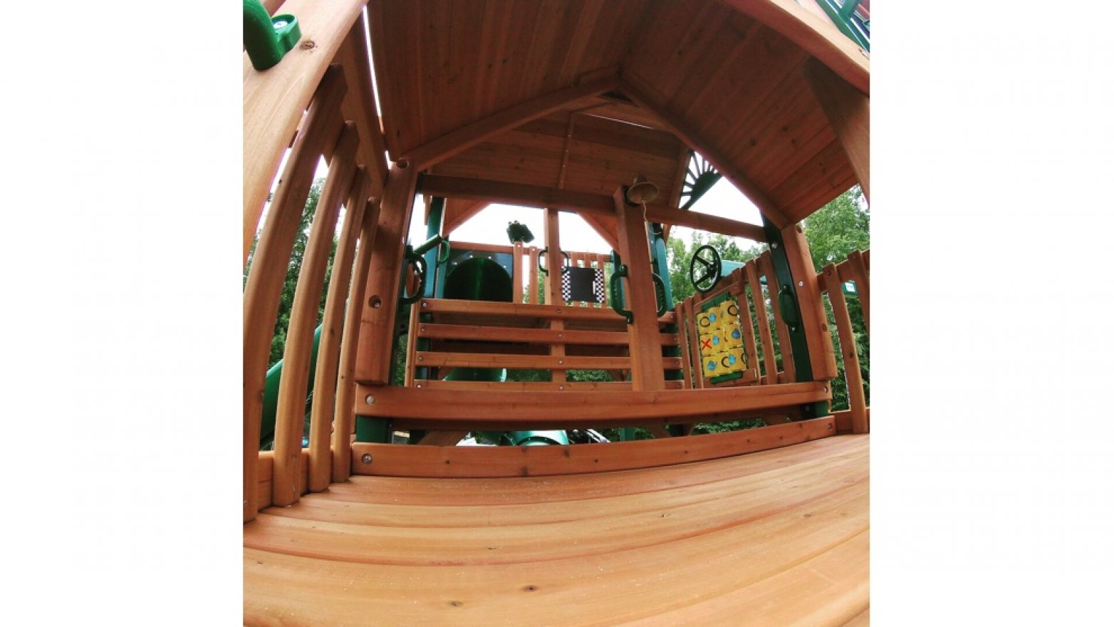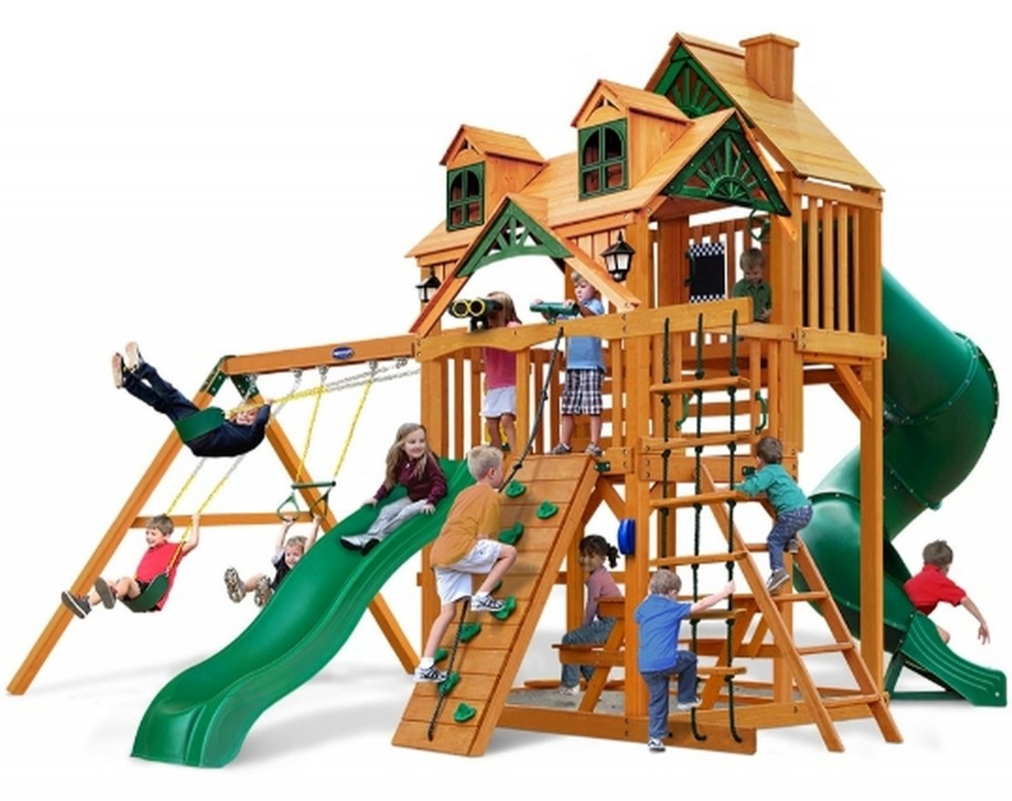 Для удобства и безопасности детей устанавливайте детский городок на ровную поверхность, чтобы с каждой стороны было по 1,8 метра свободного пространства.