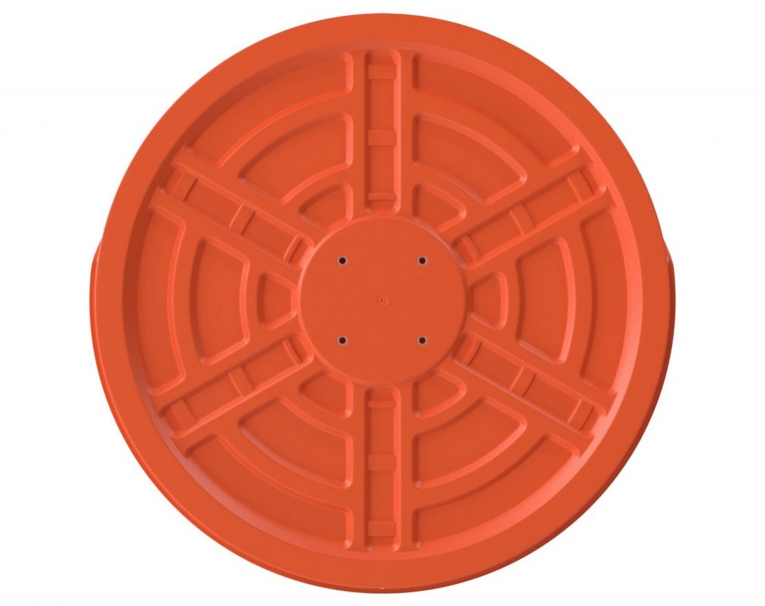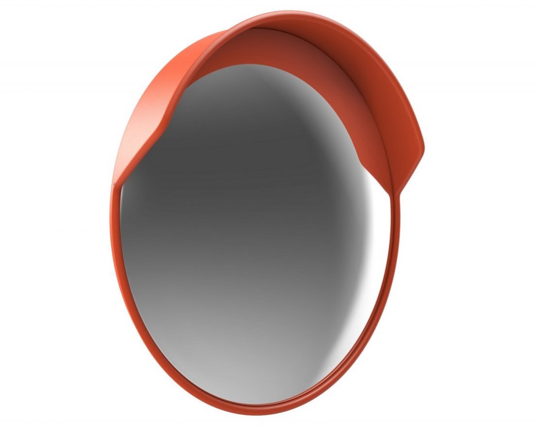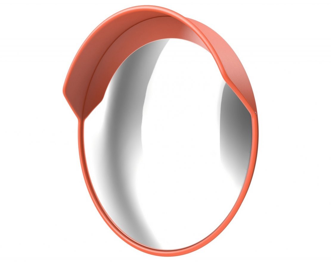 Основа зеркала выполнена из ABS пластика оранжевого цвета. В верхней части предусмотрен козырек для защиты от солнца и осадков. Зеркальная часть выполнена из поликарбоната.