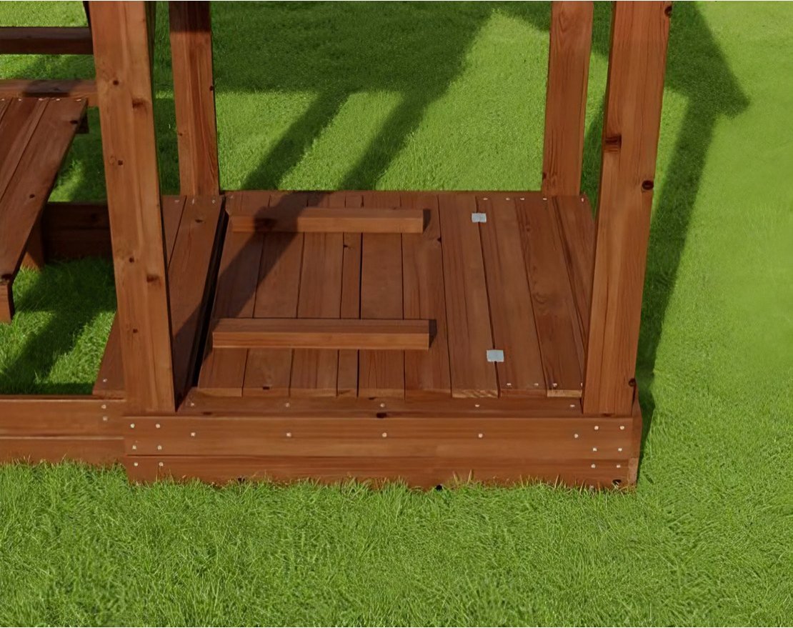 Изготовлена из карельской сосны 1 сорта. Этот вид древесины не гниет и не трескается под воздействием погодных явлений.