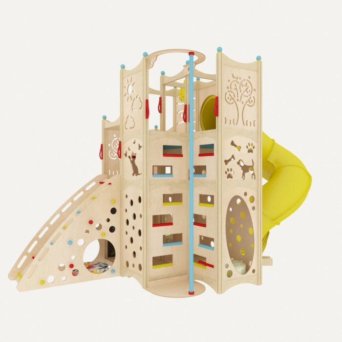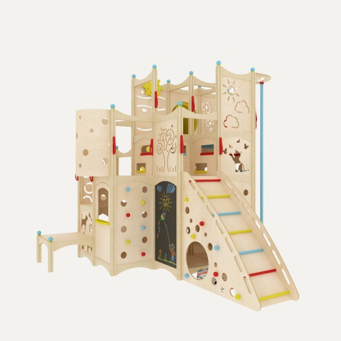 Данную модель под названием IgraGrad 13 устанавливают не только в квартире, но и в таких общественных учреждениях, как: кафе, ресторан, детсад, парк. Детишки будут в восторге от времяпрепровождения на территории этого замечательного домика из экологически чистой фанеры.