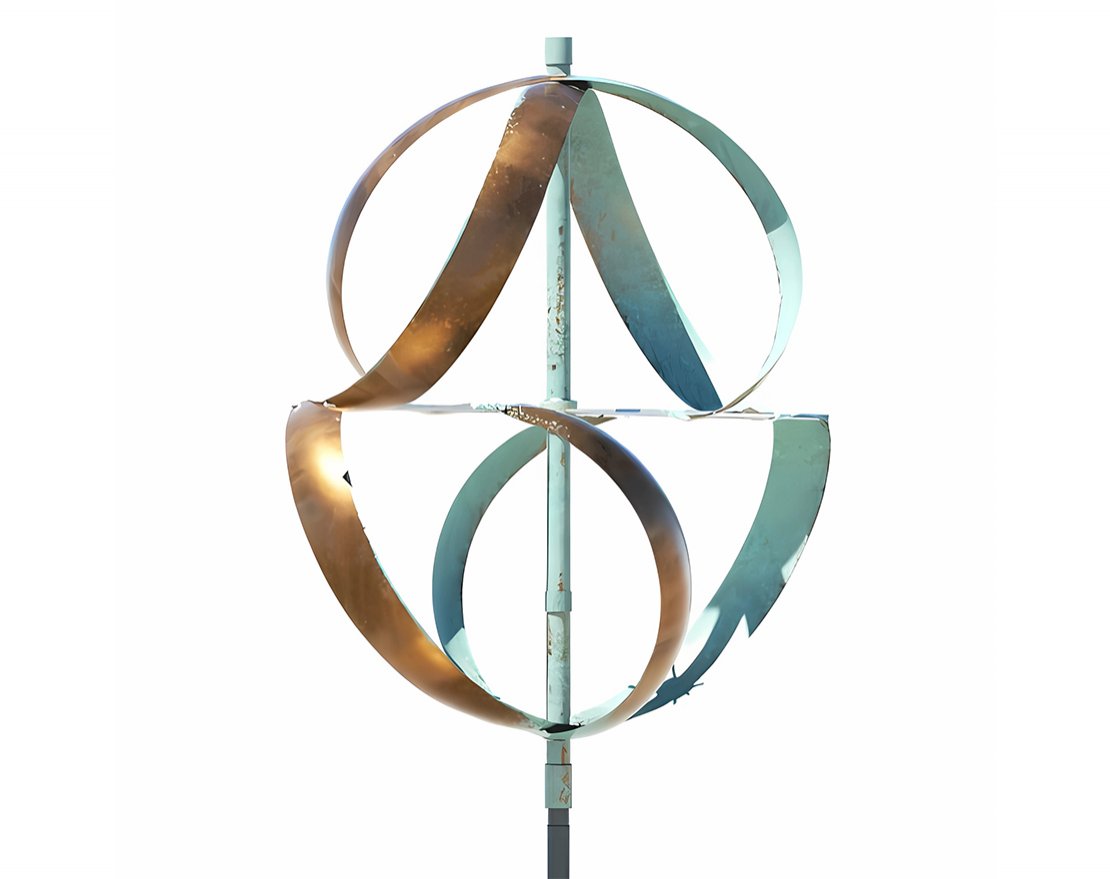 Скульптура Магеллан - это ода исследованию неизведанного и покорению стихии. Выполненная из меди, она представляет собой элегантную конструкцию, состоящую из прочной стойки и динамичного вихря закрученных пластин.
