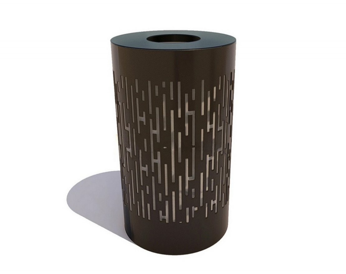 Парковая урна большого объёма поможет поддерживать чистоту и порядок на общественной территории с высокой проходимостью. Модель выполнена в форме цилиндра, внешняя поверхность декорирована отверстиями, образующими оригинальный геометрический рисунок.