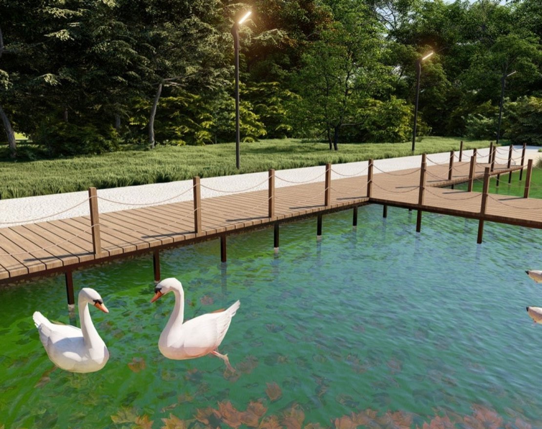 Пирс будет укреплен сваями, что обеспечит его стабильность и прочность.