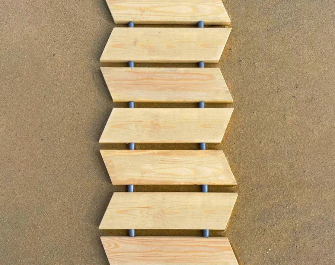Дорожка для пляжа выполнена "зигзагом", что придает ей весьма необычный вид.