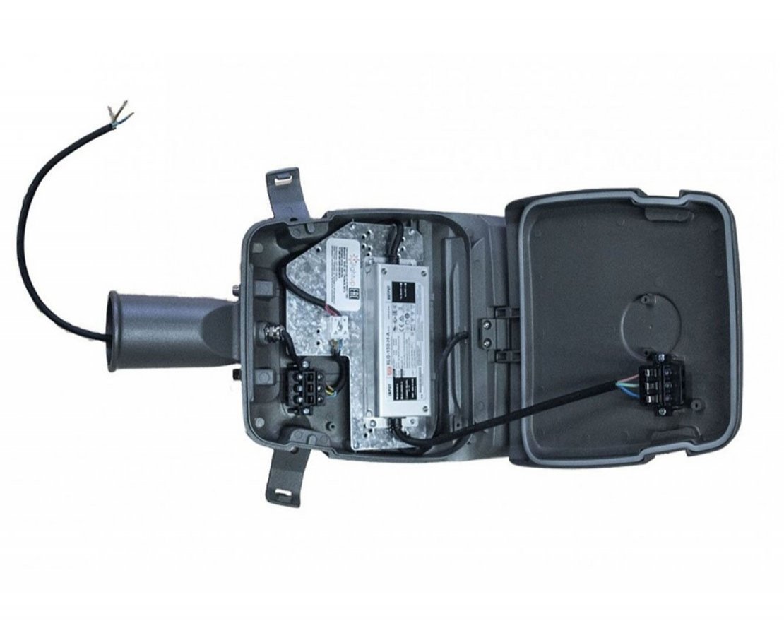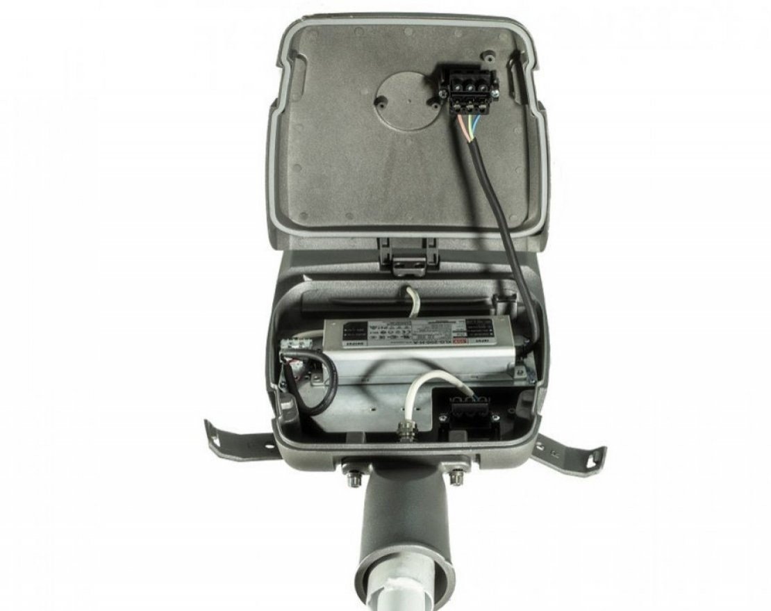 Корпус светильника алюминиевый, выполнен методом литья под давлением, покрыт порошковой краской и надежно защищен от коррозии драйвер находится в отдельном герметичном отсеке. Модель предусматривает замену драйвера без демонтажа светильника с опоры.